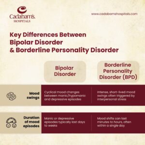 If you are searching for a solution to your problem, Cadabam’s Hospitals can help you with its team of specialized experts. We have been helping thousands of people live healthier and happier lives for 30+ years. We leverage evidence-based approaches and holistic treatment methods to help individuals effectively manage bipolar disorder and borderline personality disorder. Get in touch with us today. You can call us at +91 97414 76476. You can even email us at info@cadabamshospitals.com.